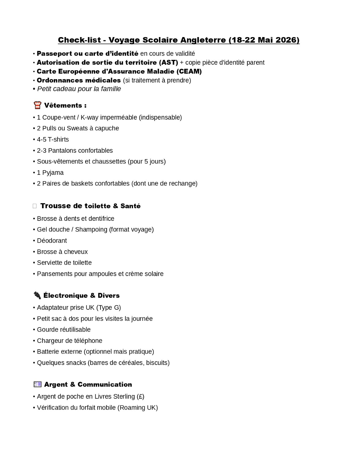 Voyage en Angleterre 2026 : 18 au 22 mai