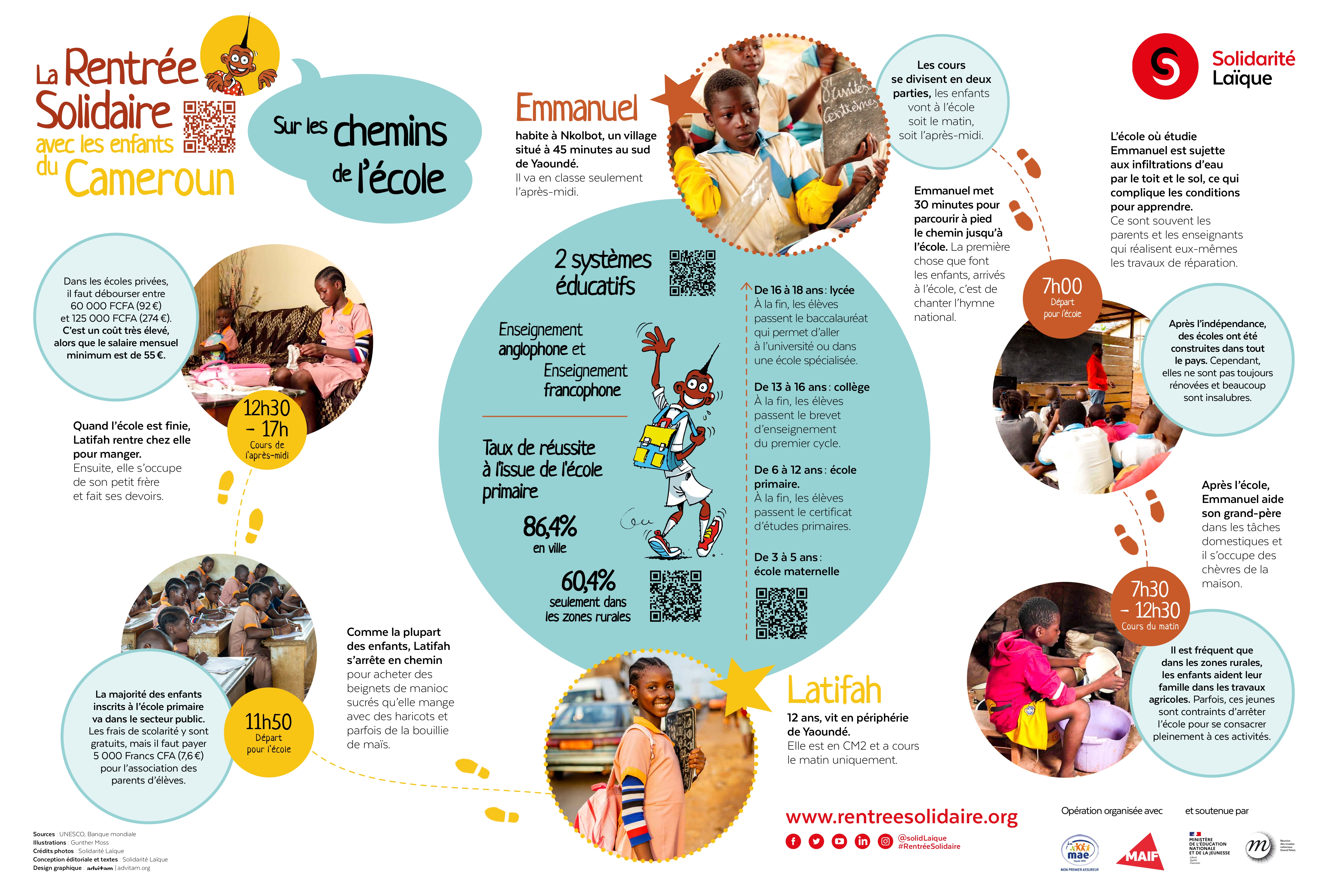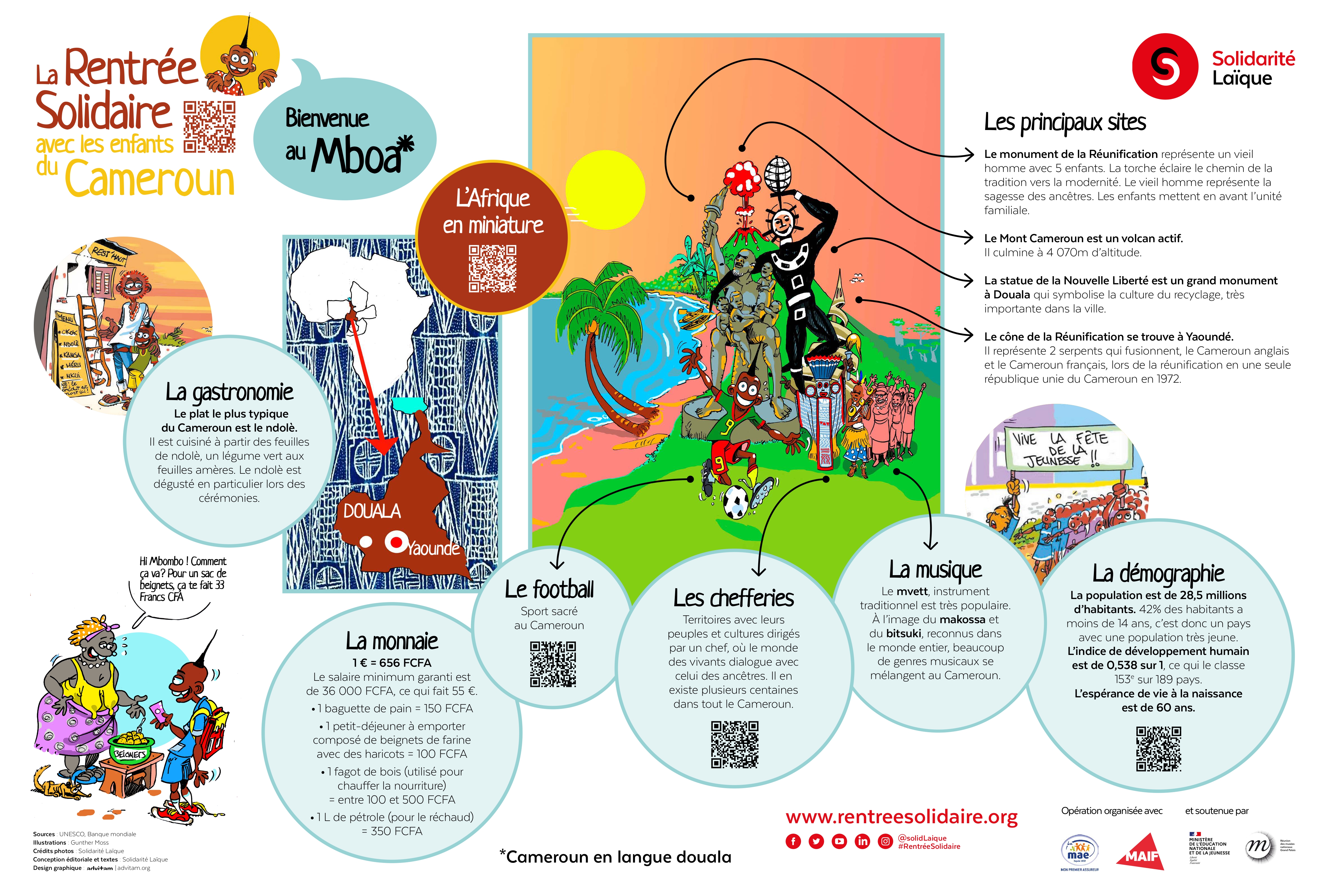 Plus d'infos sur le Cameroun et ses écoliers avec le poster de l'association Solidarité Laïque :
