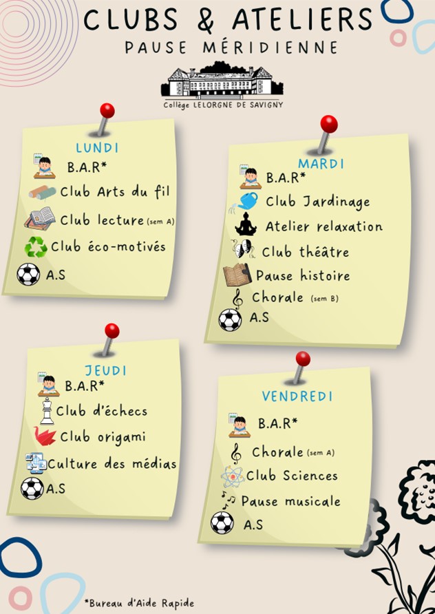 Tous les lundis midis, Mme Simonnot l'atelier Arts du Fil. Cet atelier permet aux élèves de s'initier au crochet et à la broderie, tout en développant de nouvelles compétences, de s’impliquer dans la vie du collège et de faire vivre concrètement les valeurs de responsabilité et de collaboration.