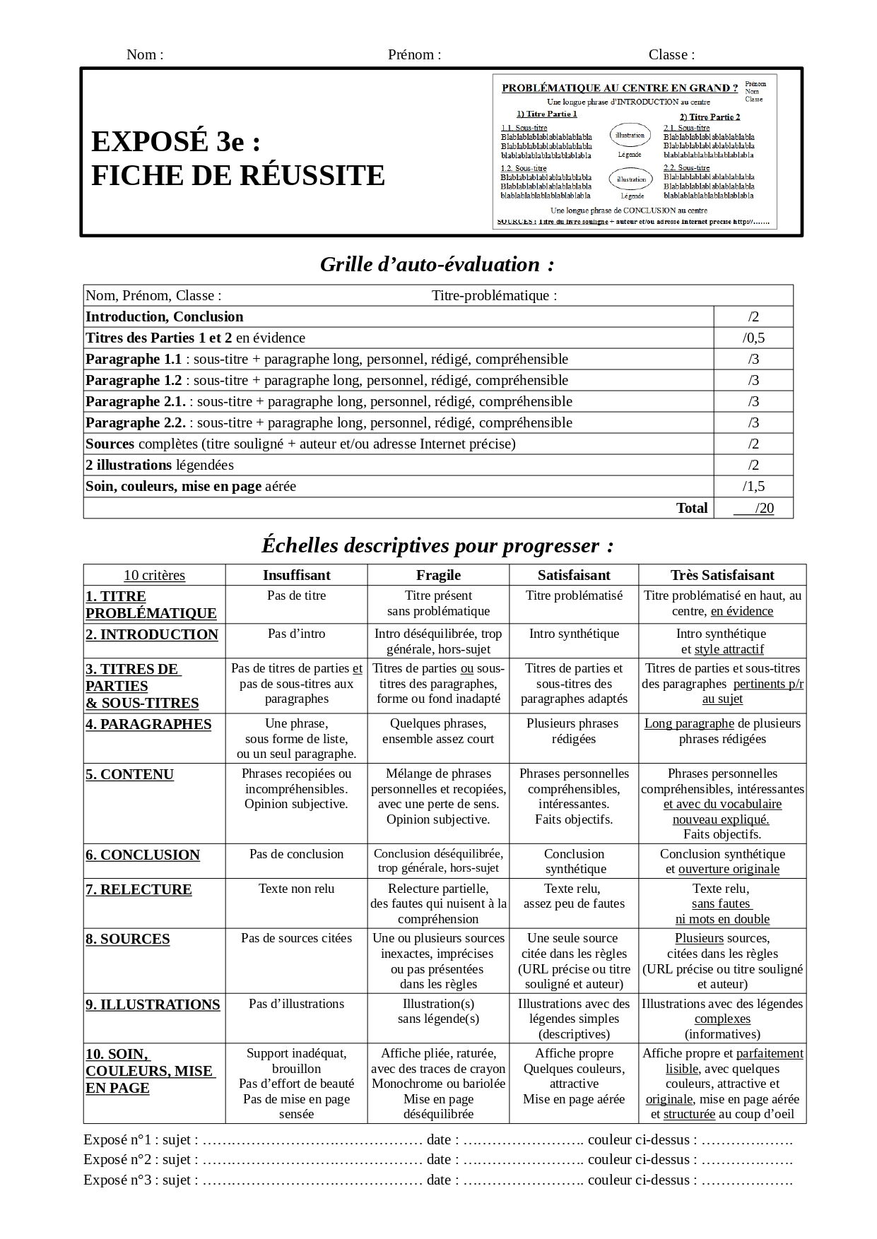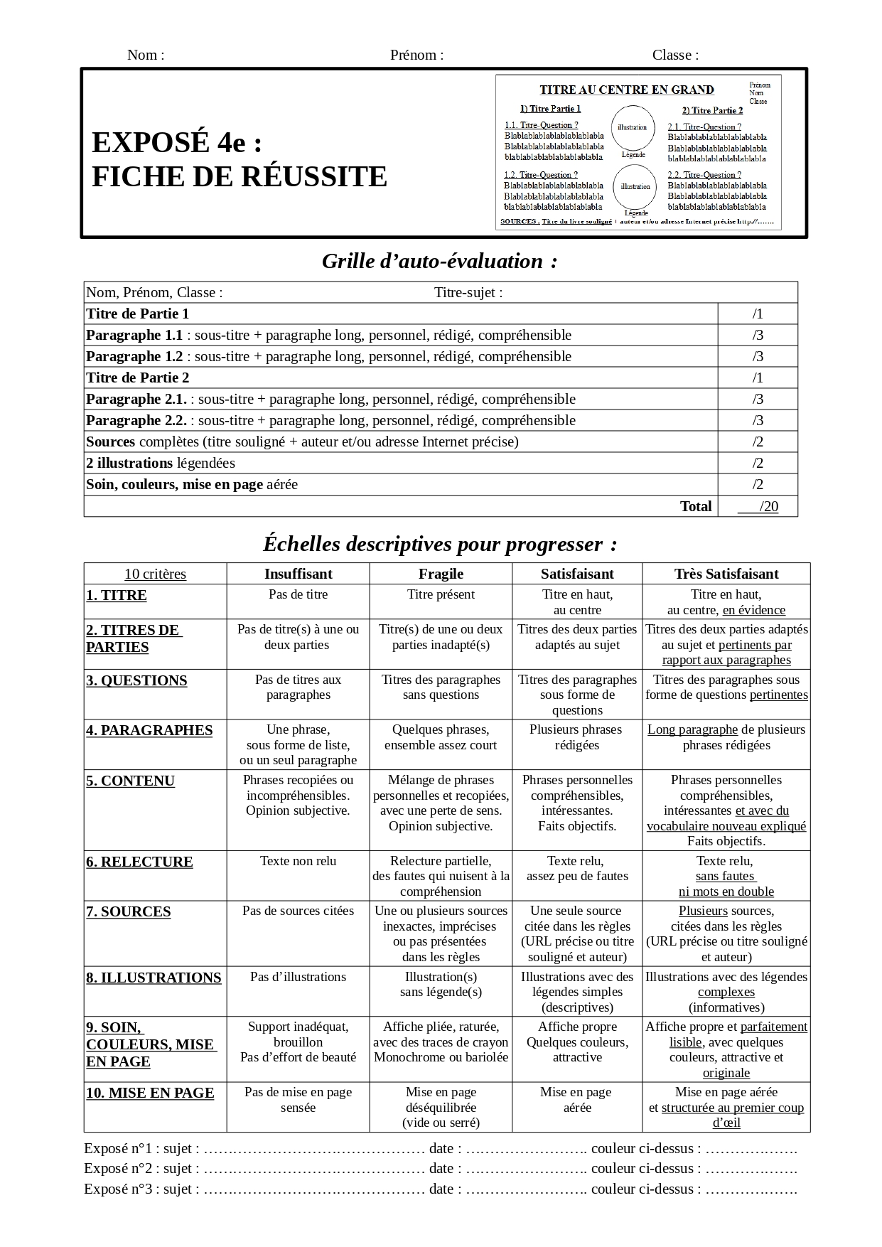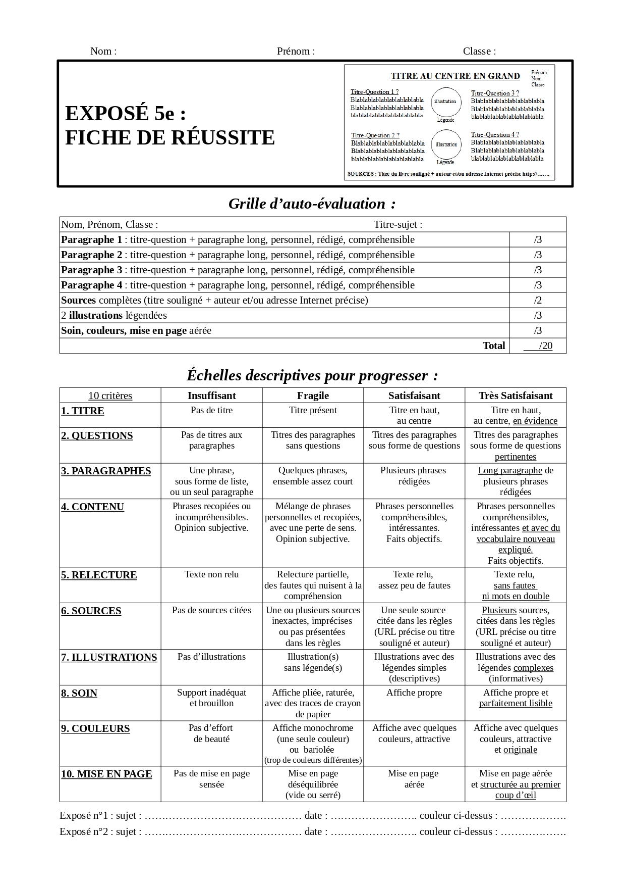 Exposés : échelles descriptives 6e 5e 4e 3e