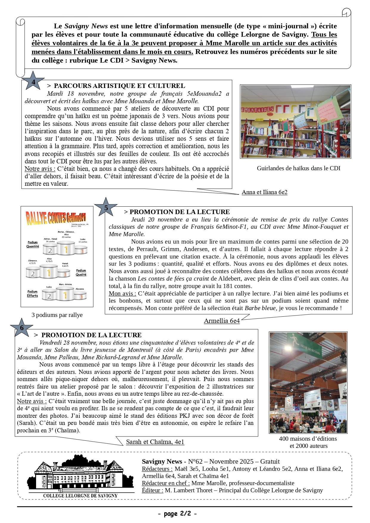 Savigny News n°62 : Novembre 2025 Voici le numéro 62 du "Savigny News", une lettre d’information réalisée par les élèves, pour suivre l’actualité du Collège.Merci aux rédacteurs qui ont rédigé un article. Les autres, n’hésitez plus, t ...