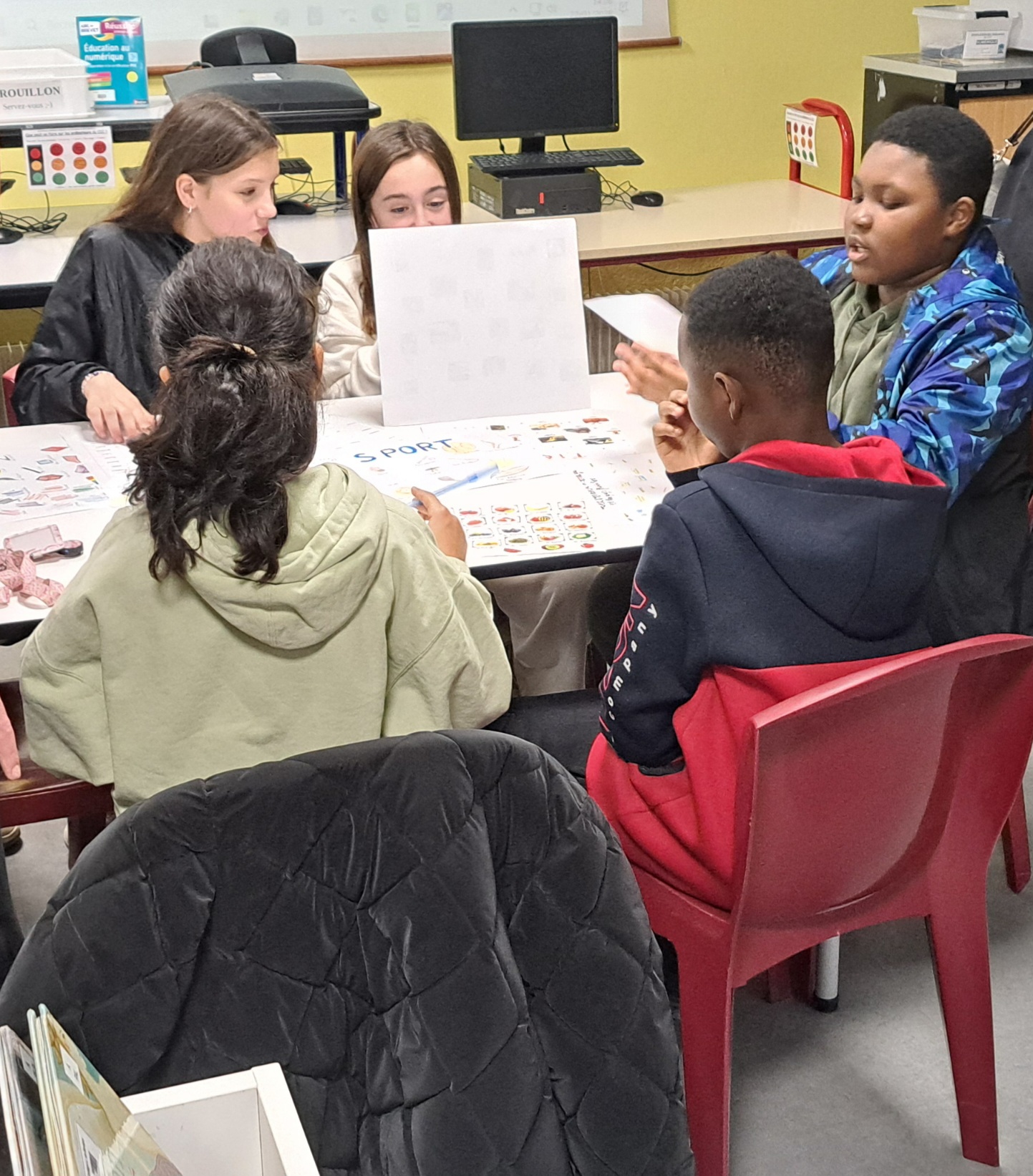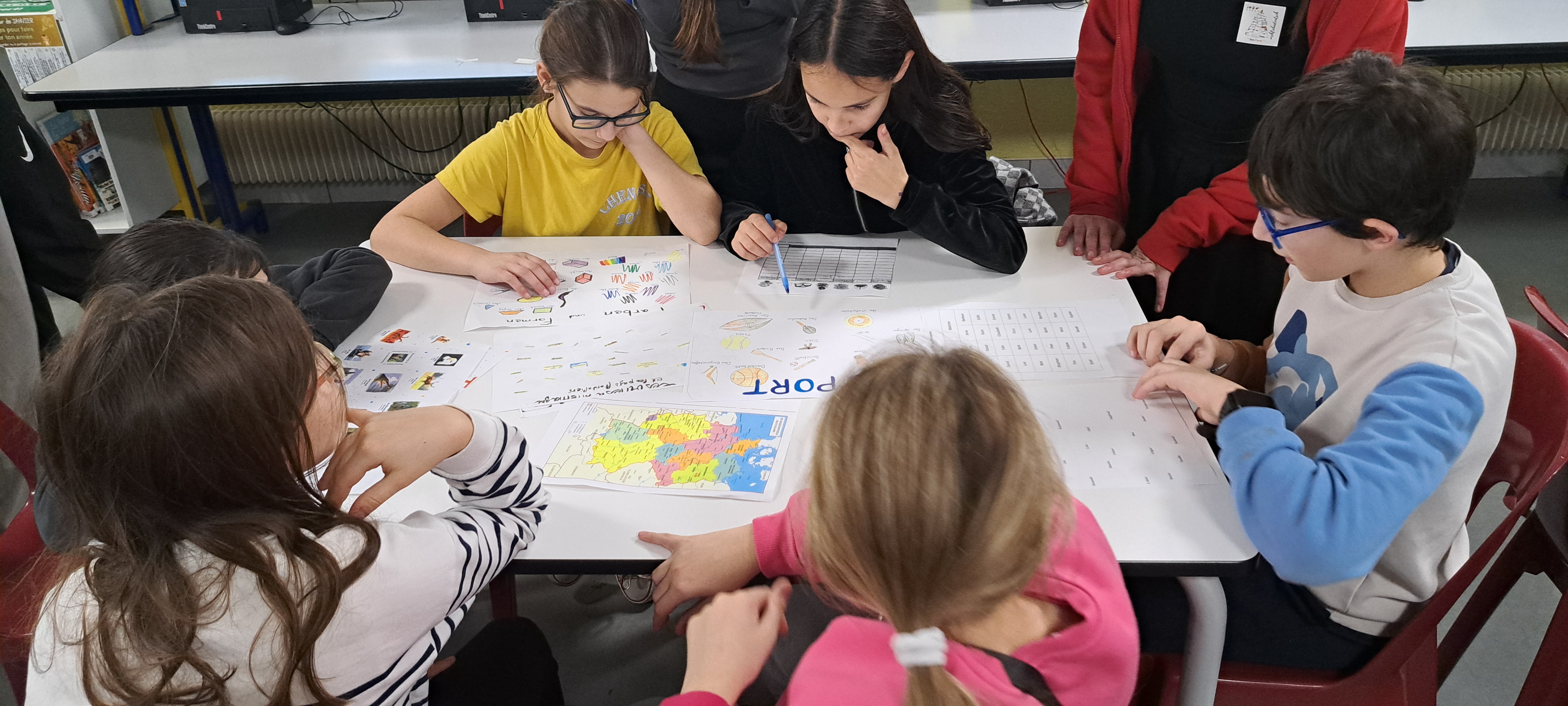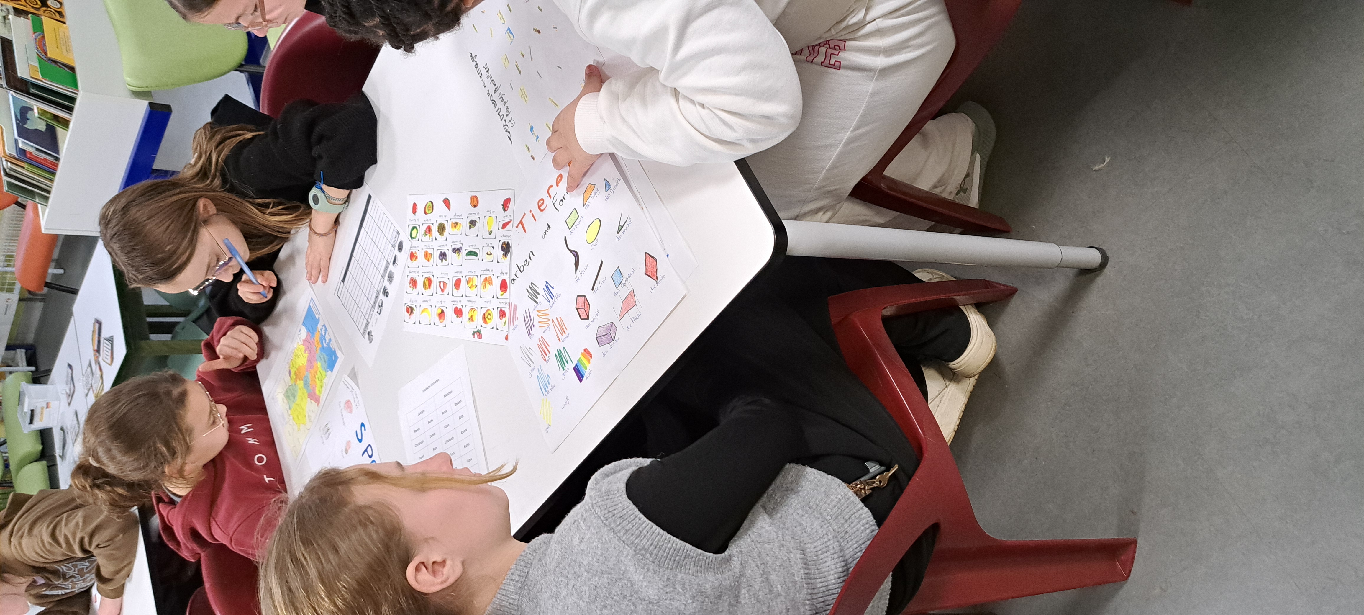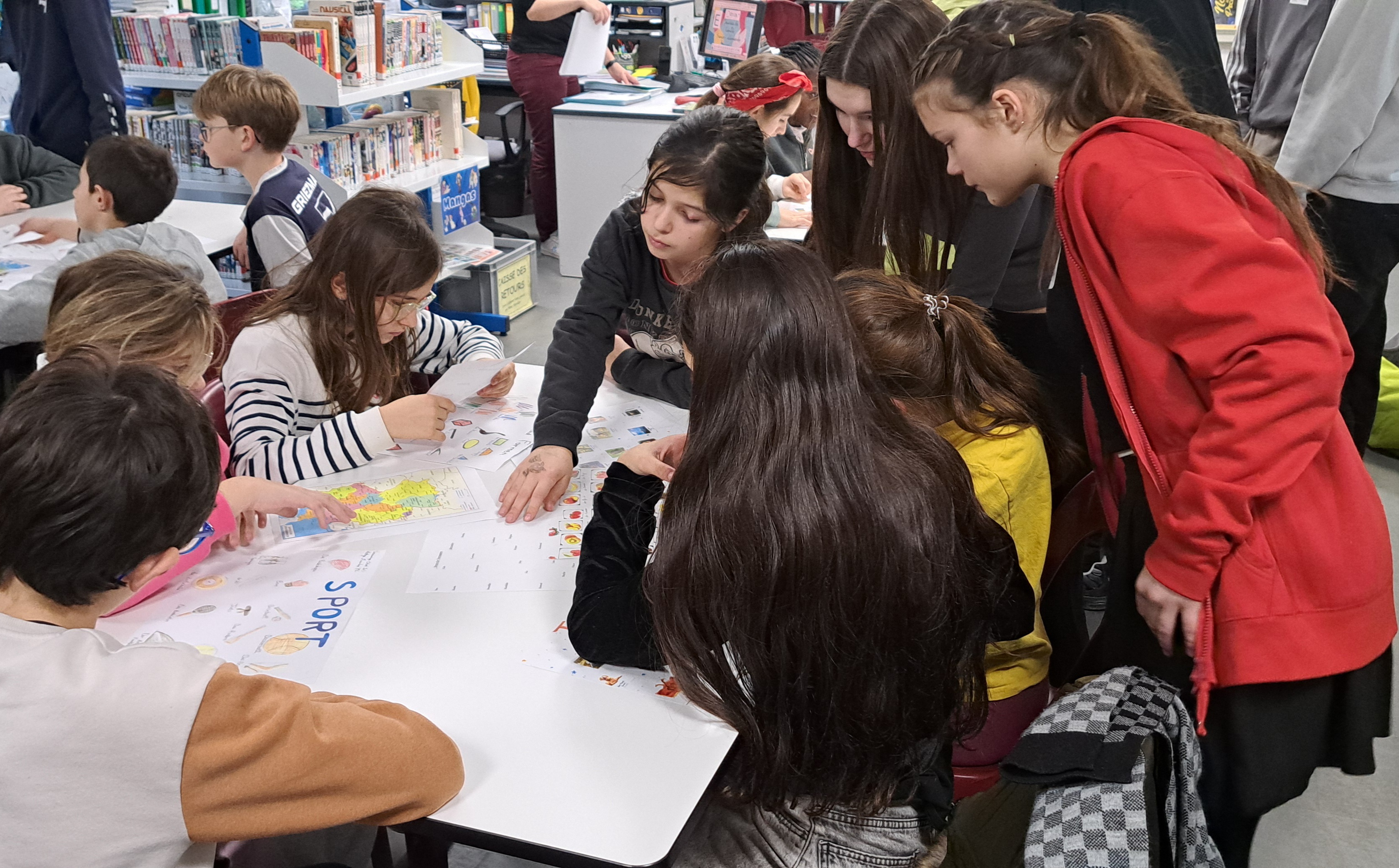 Les élèves de 6e découvrent le vocabulaire allemand au cours d'un jeu organisé par les germanistes de 3e, au CDI.