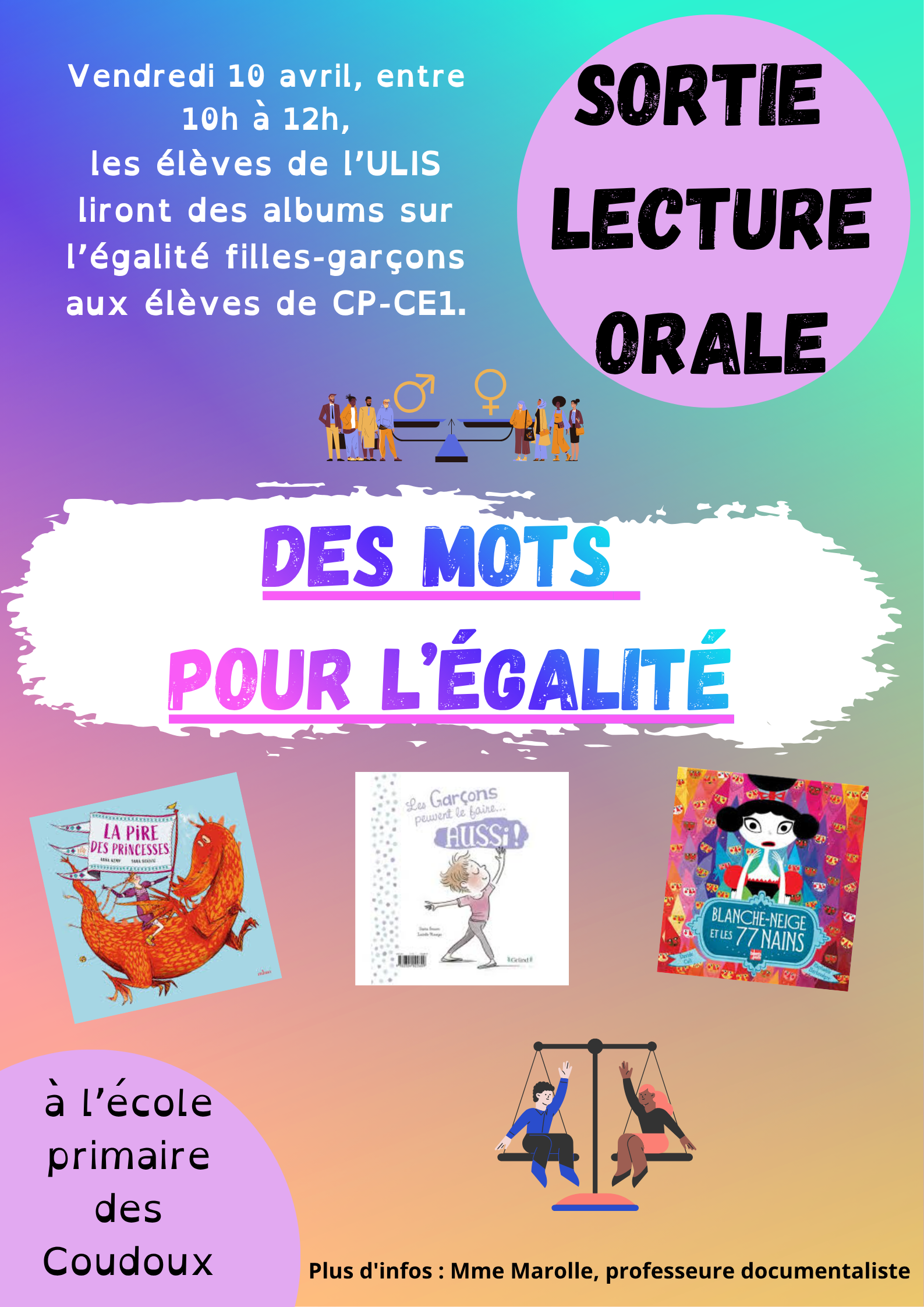 Sortie lecture orale vendredi 10/04 à l'école des Coudoux