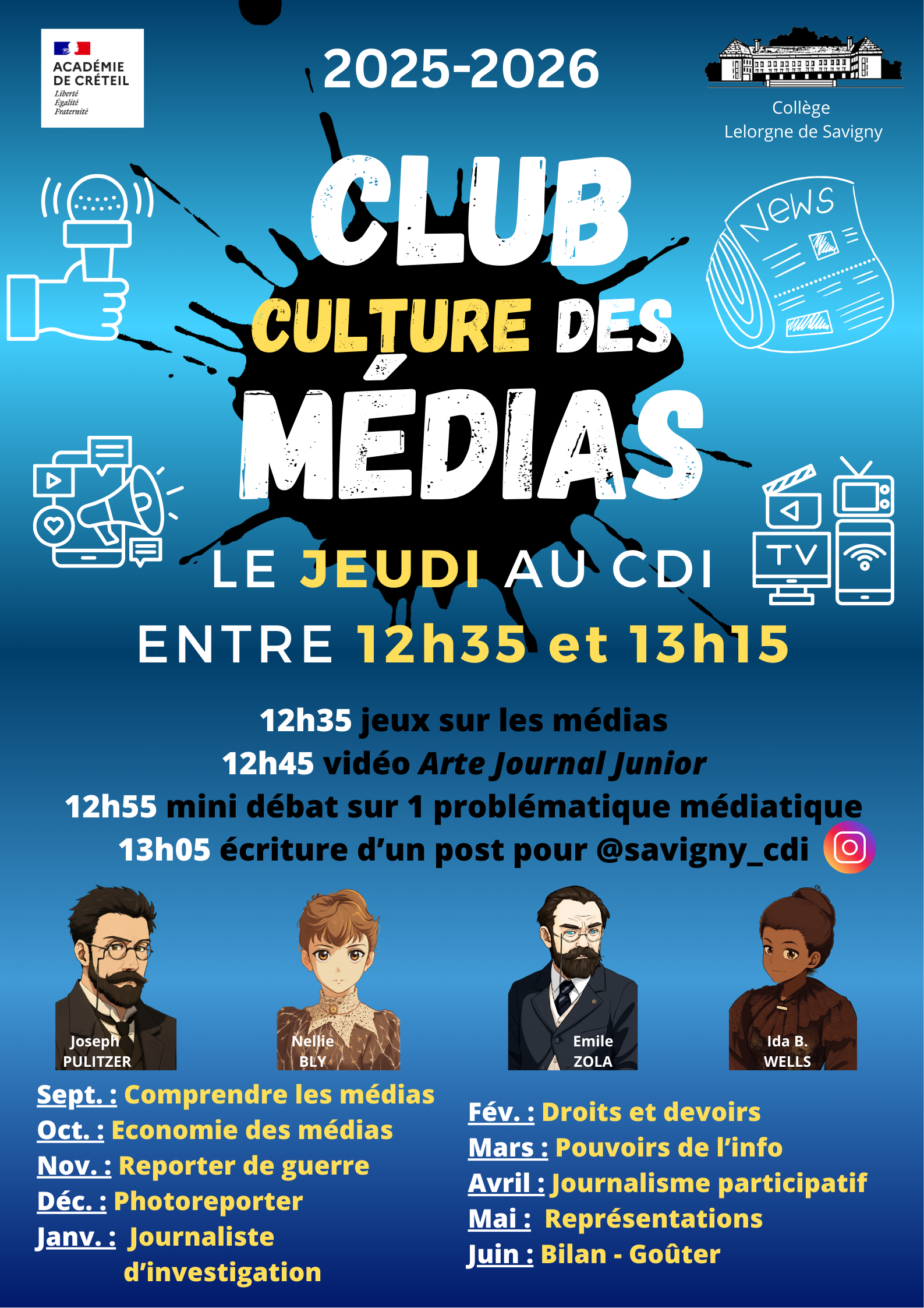 Au CDI, Club Culture des Médias : le JEUDI à 12h35