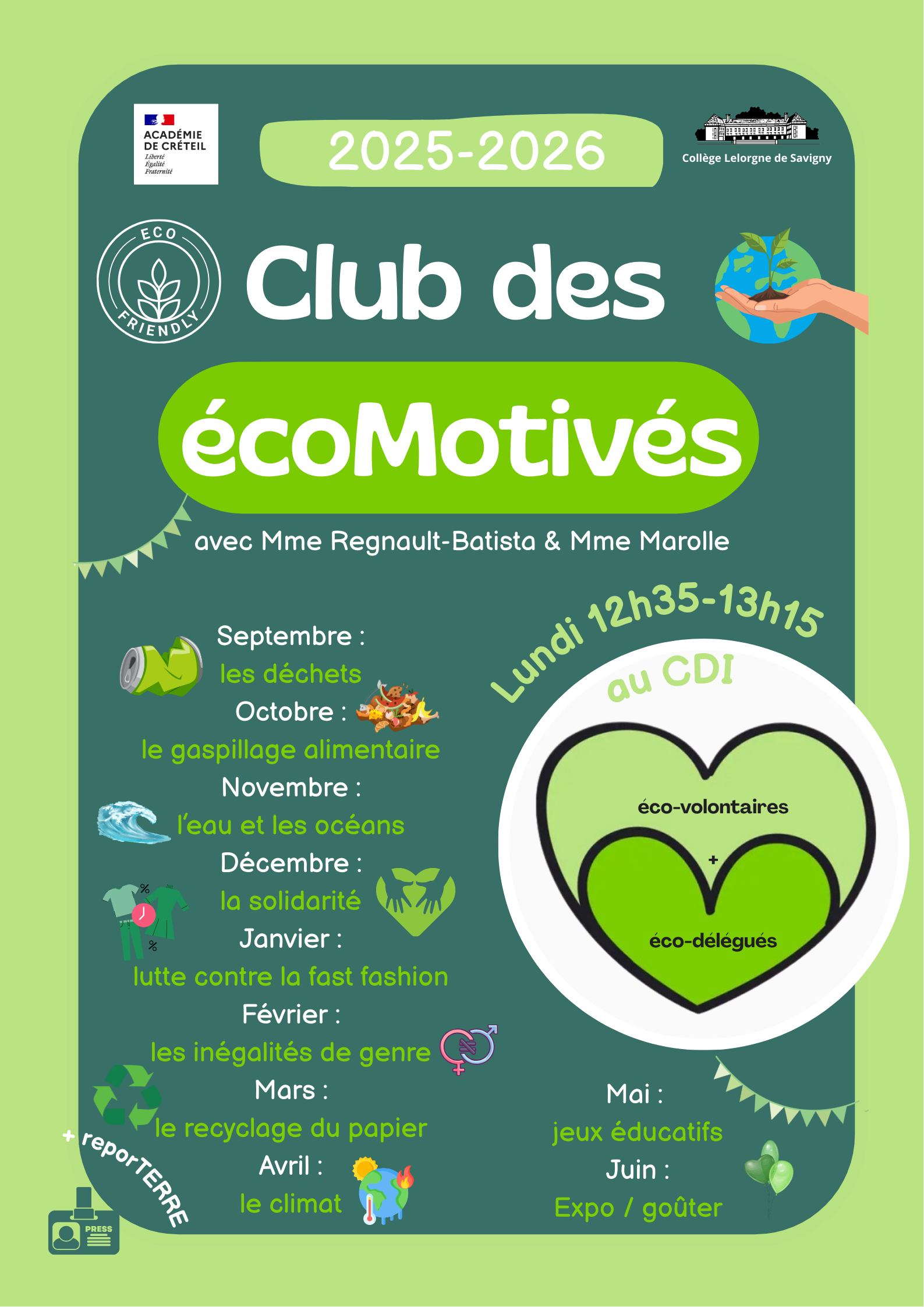 Au CDI, Club des écoMotivés : le LUNDI à 12h35