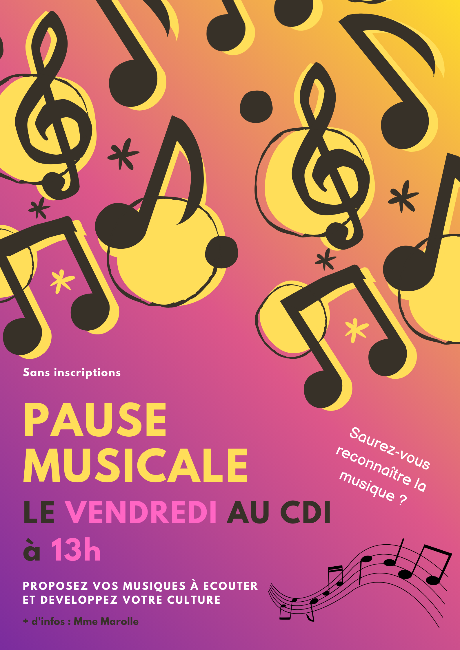 Au CDI, Pause Musicale : le VENDREDI à 13h